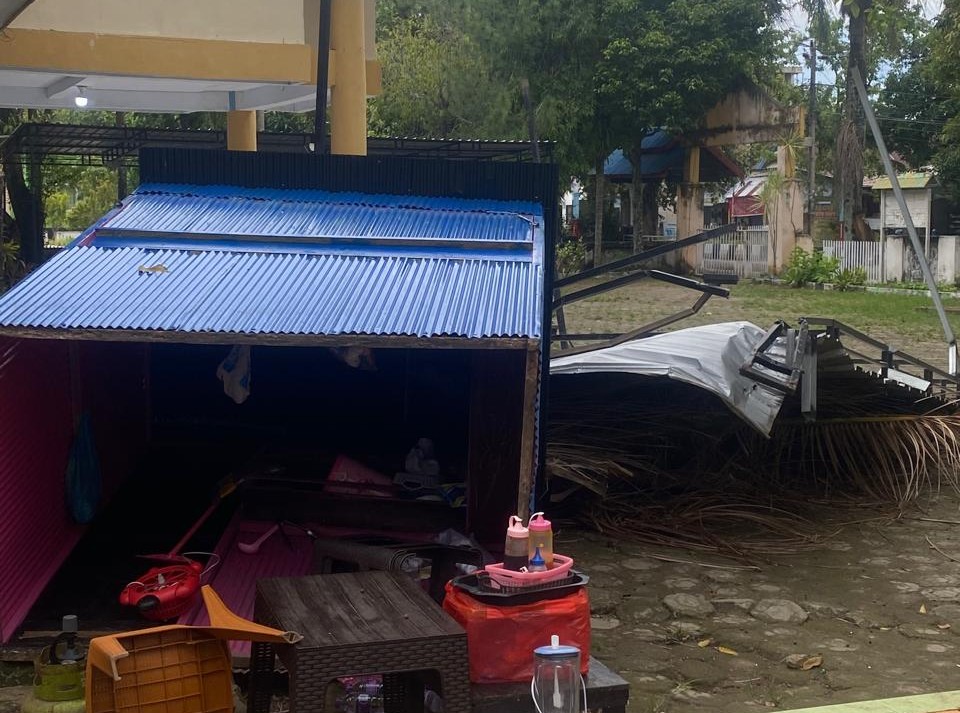Di Alun-alun Sinjai Bersatu, tampak salah satu fasilitas olahraga juga ikut roboh terkena angin kencang.