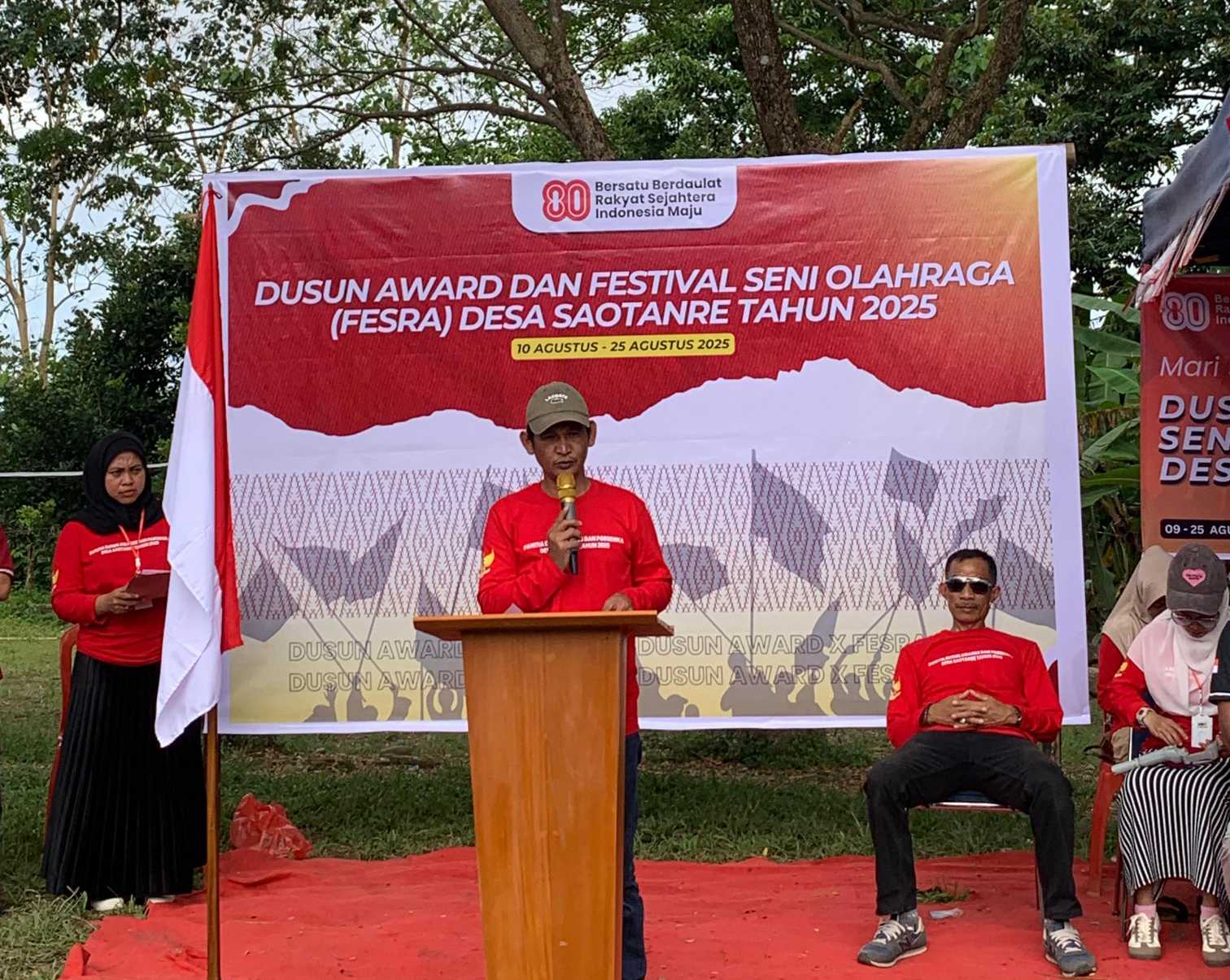 “Alhamdulillah, berkat kerja keras seluruh panitia dan dukungan dari berbagai pihak, acara pembukaan FESRA dan Dusun Award 2025 dapat berjalan dengan sukses. Kami berharap seluruh rangkaian kegiatan dapat berjalan lancar dan memberikan manfaat yang besar bagi masyarakat Desa Saotanre,” tuturnya.