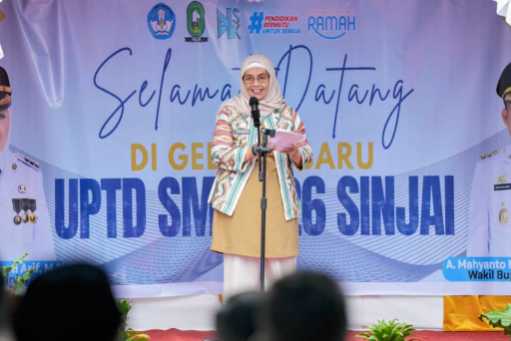 Bupati Sinjai, Hj. Ratnawati Arif, hadir langsung meresmikan gedung baru UPTD SMPN 26 Sinjai di Dusun Puncak, Desa Gunung Perak, Kecamatan Sinjai Barat, Kamis (21/08/2025) siang.