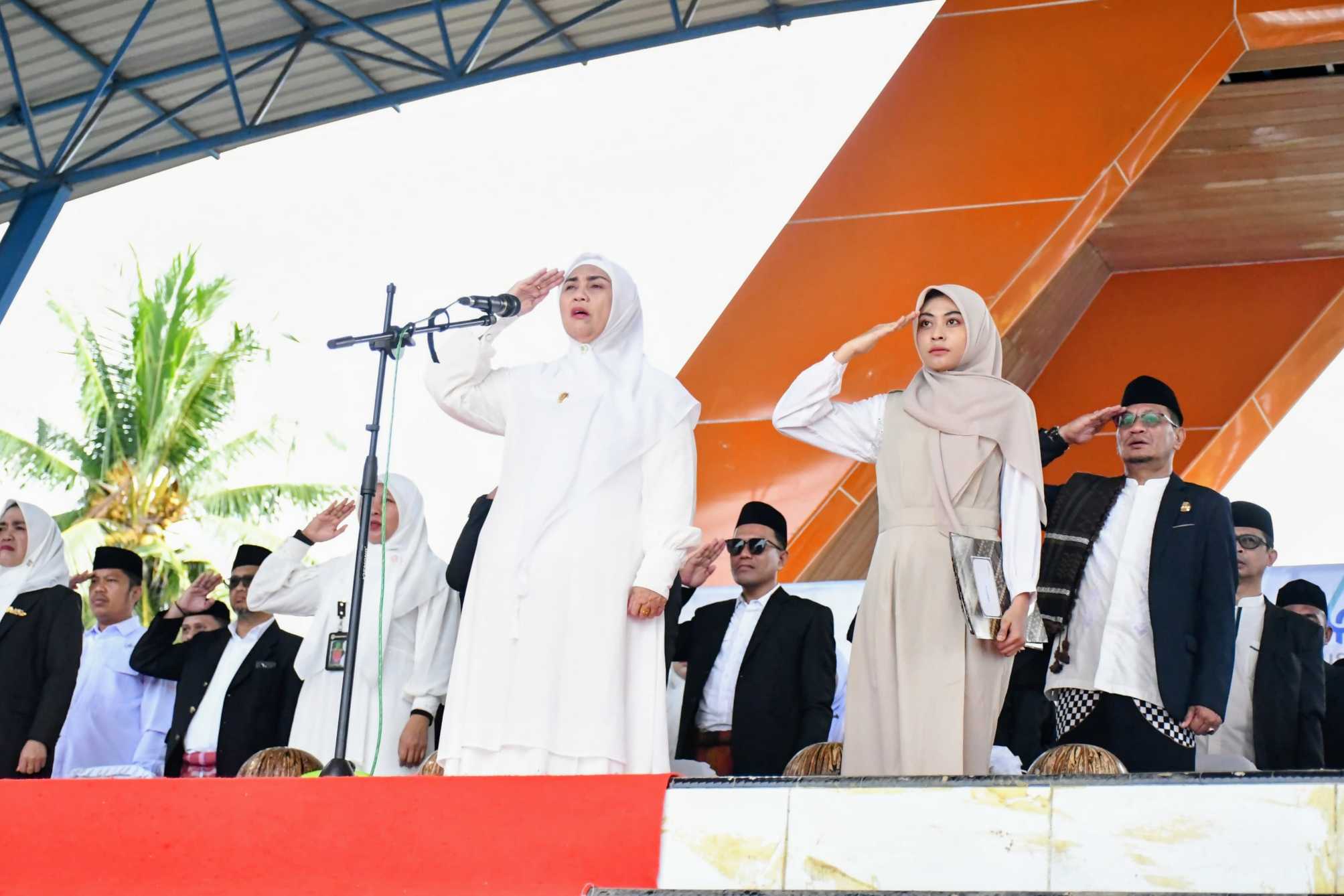 Bupati Sinjai, Hj. Ratnawati Arif, menjadi inspektur upacara pada peringatan Hari Santri Nasional 2025. (FOTO: Humas Pemkab)