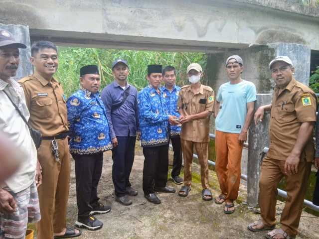 Kadis PUPR Sinjai (ujung kiri) bersama rombongan saat melihat langsung kondisi pintu air irigasi Lamole di Bulupoddo. (FOTO: Humas PUPR)