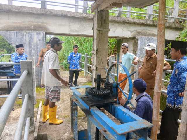 “Ternyata pak desa juga baru injak itu lokasi. Jadi tadi saya sudah serahkan itu kunci pintu air ke pak desa disaksikan pak camat untuk mengatur sendiri air di sana,” terangnya.