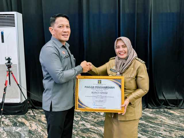Piagam penghargaan tersebut diserahkan langsung oleh Kepala Kantor Wilayah Kemenkum Sulsel, Andi Basmal kepada Bupati Sinjai.