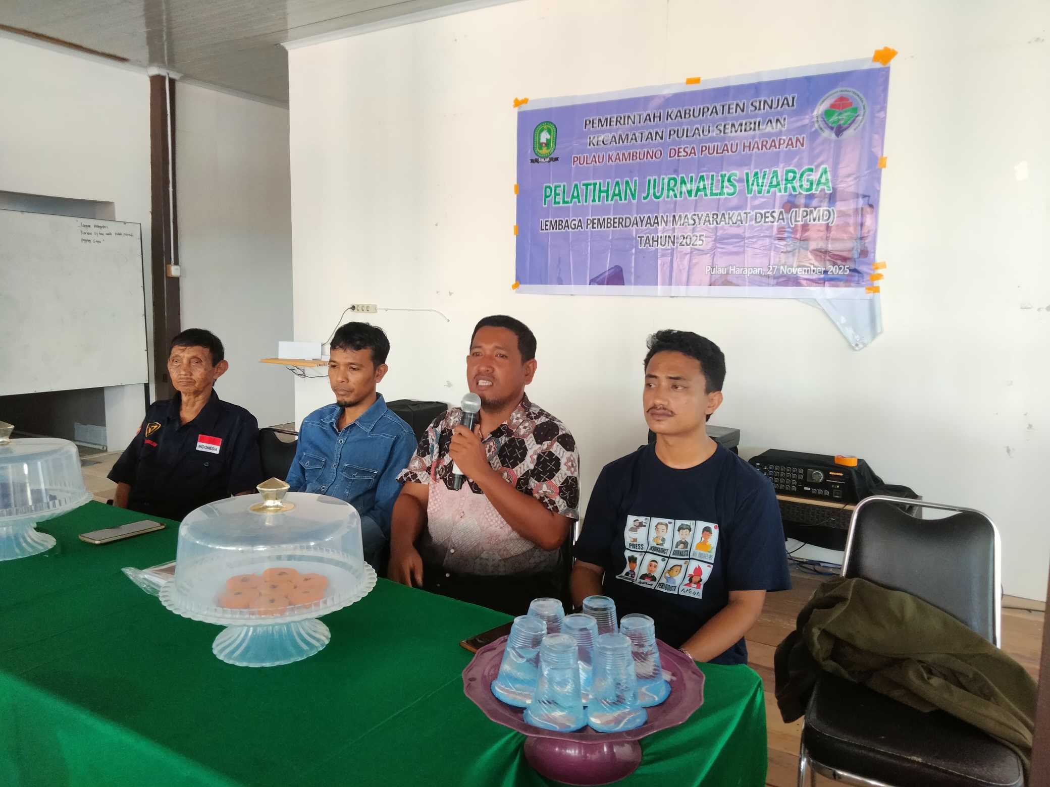Sinjai.info, Pulau Sembilan,– Lembaga Pemberdayaan Masyarakat Desa (LPMD) Pulau Harapan, Kecamatan Pulau Sembilan menggelar pelatihan Jurnalistik Warga di Aula Puskesmas Pulau Sembilan, Desa Pulau Harapan, Kamis (27/11/2025) pagi.