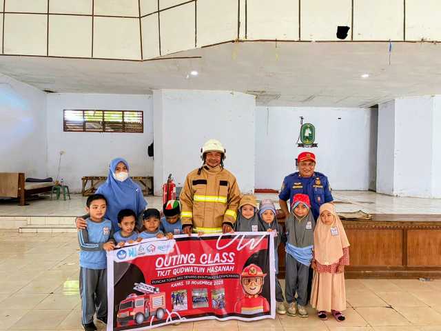Materi yang diberikan setiap kali ada kunjungan di Posko Damkar ungkapnya, hanya materi ringan yang bernilai edukasi seperti mengenalkan peralatan yang digunakan petugas pemadam kebakaran.