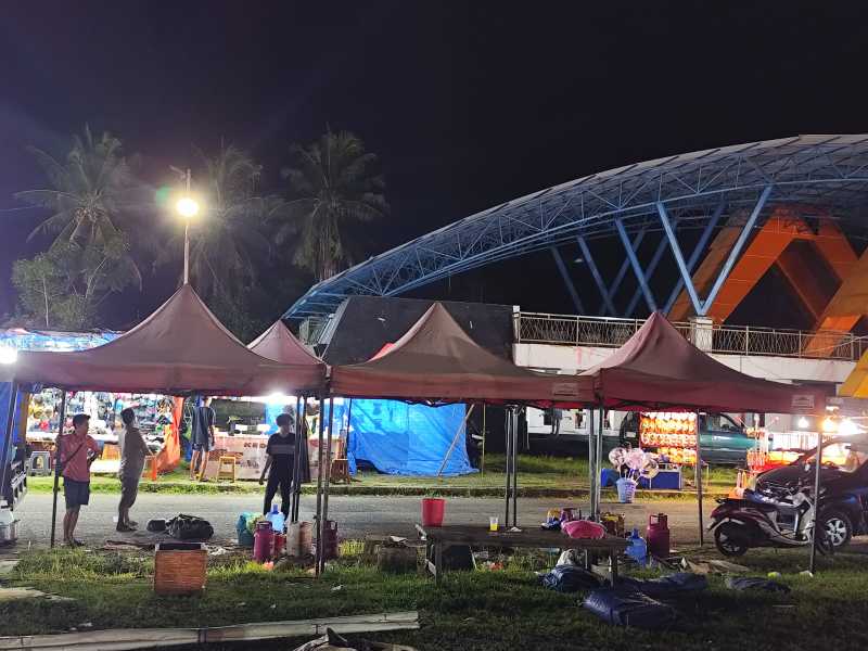 Pantauan Sinjai Info, Sabtu (28/2/2026) Pkl.23.15 WITA, tampak terlihat beberapa pedagang yang sebelumnya berjualan di tenda sebelah selatan, mengemas barang dagangannya lalu menaikkan ke mobil pickup kemudian meninggalkan lokasi.
